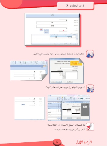 3 تايطعملا دعاوق .لوقلحا عيجم نمضتي "ةيتاذ" لودلج يدومع طيطختب اجذونم ئشننل ً ."داولما" ملاعتسلاا ليغشتب موقي ارز جذومنلا في جردنل ً ."ةيبرعلا ةغللا" لىإ ملاعتسلاا ليغشت رزلا ةيمست رغ ّ .تانايبلا ةدعاق قلاغإب موقي رمأ رز فضأ 12 لىولأا ةدحولا