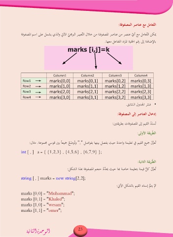 Row3 marks[2,0] marks[2,1] marks[2,2] marks[2,3]