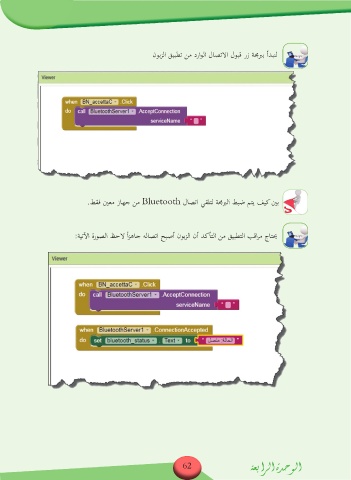 نوبزلا قيبطت نم دراولا لاصتلاا لوبق رز ةمجرب أدبنل .طقف ينعم زاهج نم Bluetooth لاصتا يقلتل ةمجرلا طبض متي فيك ينب :ةيتلآا ةروصلا ظحلا ازهاج هلاصتا حبصأ نوبزلا نأ دكأتلا نم قيبطتلا بقارم جاتيح ً 62 ةعبارلا ةدحولا