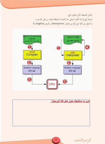 :عبتت لوانحو تيلآا ططخلما لمأتنل ّ .بوسالحا لبق نم هذيفنت ةظحلل هل انتباتك ذنم يمجرلا دوكلا ابه ريم تيلا ةلحرلا ّ . Compiler مجترلما و Interpreter رسفلما نم لك لمع ةيلآ ينب قرفلا ام ّ ّ ّ :ةجمربلا ةغل لمع لوح هتجتنتسا ام ن ّ ود 88 ةسداسلا ةدحولا
