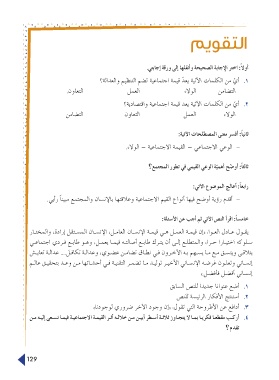التعاون. ١ .١أ ّي من الكلمات الآتية يع ّد قيمة اجتماعية تضم التنظيم والعدالة؟