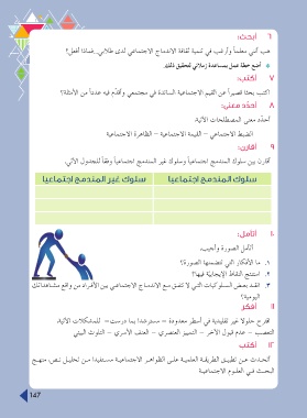 أقارن بين سلوك المندمج اجتماعياً وسلوك غير المندمج اجتماعياً وفقاً للجدول الآتي:
