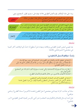 ﺍﻟﻤﺸﺎﺭﻛﺔ ﺗﺘﻤﺜﻞ ﺍﻟﻤﻬﻤﺔ ﺍﻟﺜﺎﻧﻴﺔ ﻓﻲ ﺃﻥ ﺍﻟﺨﺪﻣﺎﺕ ﺍﻟﺘﻄﻮﻋﻴﺔ ﺗﻌﻤﻞ ﻋﻠﻰ ﺗﺮﻗﻴﺔ ﺃﻭﺿﺎﻉ ﺍﻟﺒﺸﺮ ﻣﻤﺎ