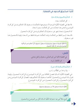 إذاً اﻟﻜﻠّﻴﺔ اﳌﻮﺟ ّﺒﺔ ﺗﺴﺘﻐﺮق ﻣﻮﺿﻮﻋﻬﺎ وﻻ ﺗﺴﺘﻐﺮق ﻣﺤﻤﻮﻟﻬﺎ .ﻷن اﻟﺤﻜﻢ ﺷﻤﻞ ﻛﻞ أﻓﺮاد