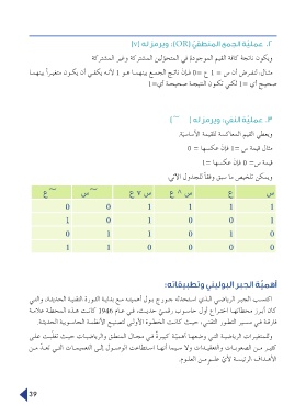 مثـال :لنفـرض أن س = 1ع = 0فـإ َن ناتـج الجمـع بينهمـا هـو 1لأنـه يكفـي أن يكـون متغيـراً بينهمـا