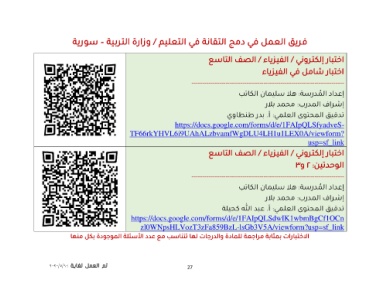 فريق العمل في دمج التقانة في التعليم /وزارة التربية – سورية