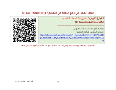 فريق العمل في دمج التقانة في التعليم /وزارة التربية – سورية