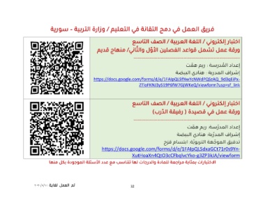 فريق العمل في دمج التقانة في التعليم /وزارة التربية – سورية