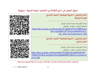 فريق العمل في دمج التقانة في التعليم /وزارة التربية – سورية
