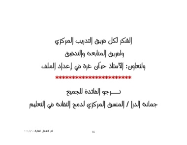 الشكر لكل فريق التدريب المركزي ولفريق المتابعة والتدقيق ولتعاون :الأستاذ حي ان غرة في إعداد الملف *********************** نـــرجو الفائدة للجميع جمانة الدرا /المنسق المركزي لدمج التقانة في التعليم 2020/5/10 55