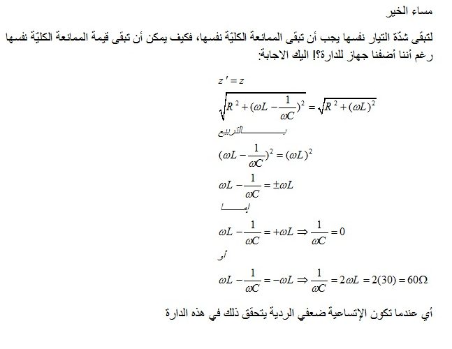 - دارة تحتوي على التسلسل مقاومة و وشيعة Xl=Wl=30 احسب اتساعية Xc المكثفة الواجب ربطها على التسلسل مع المقاومة والوشيعة مع بقاء شدة التيار ثابتة من فضلكم الإجابة على السؤال