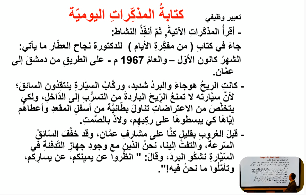 التاسع- لغة عربية - الجمال المذكرات اليومية تعبير