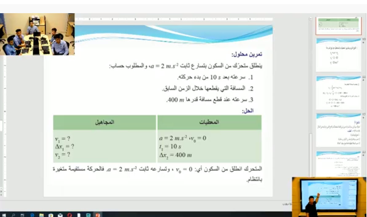 الأول الثانوي - فيزياء - الحركة المستقيمة المتغيرة بانتظام
